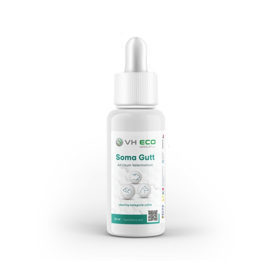 V případě oslabené imunity u zvířat způsobené ať už věkem, traumatem, alergií, chronicky probíhajícími onemocněními, metabolickými onemocněními a jiným, si organismus zvířat nedokáže vyprodukovat dostatečné množství kyseliny chlorné, která má úžasnou schopnost pronikat hluboko do tělesných tkání, kde, při jejím kontaktu s patogeny, tyto zneškodní. Z toho důvodu ji právě v těchto případech musíme doplnit zvenčí, a to prostředkem VH Soma (spray, gutt, gel) a urychlit tak u zvířat léčebný proces.