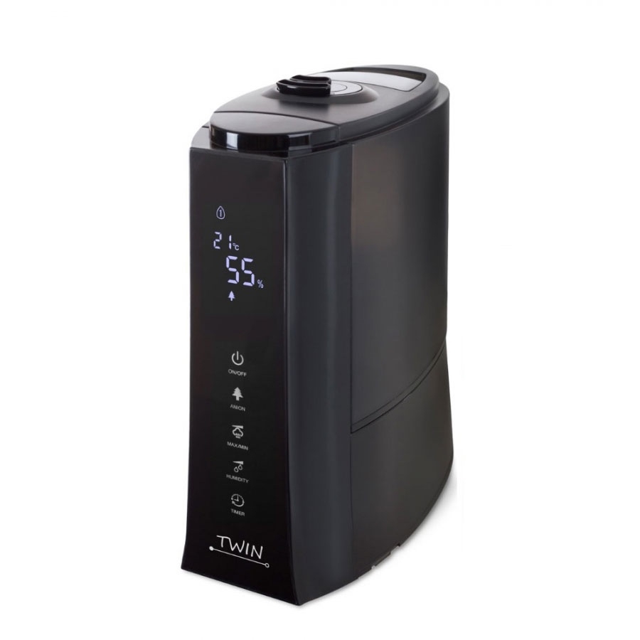 Zvlhčovač Airbi TWIN vypouští čistou a svěží páru do ovzduší. Pomocí vodního a antibakteriálního filtru zachycuje minerální látky obsažené ve vodě a zabraňuje dalšímu rozptylování těchto částic. Výhodou ultrazvukového zvlhčovače TWIN je vysoký výkon při velmi nízké spotřebě elektrické energie.